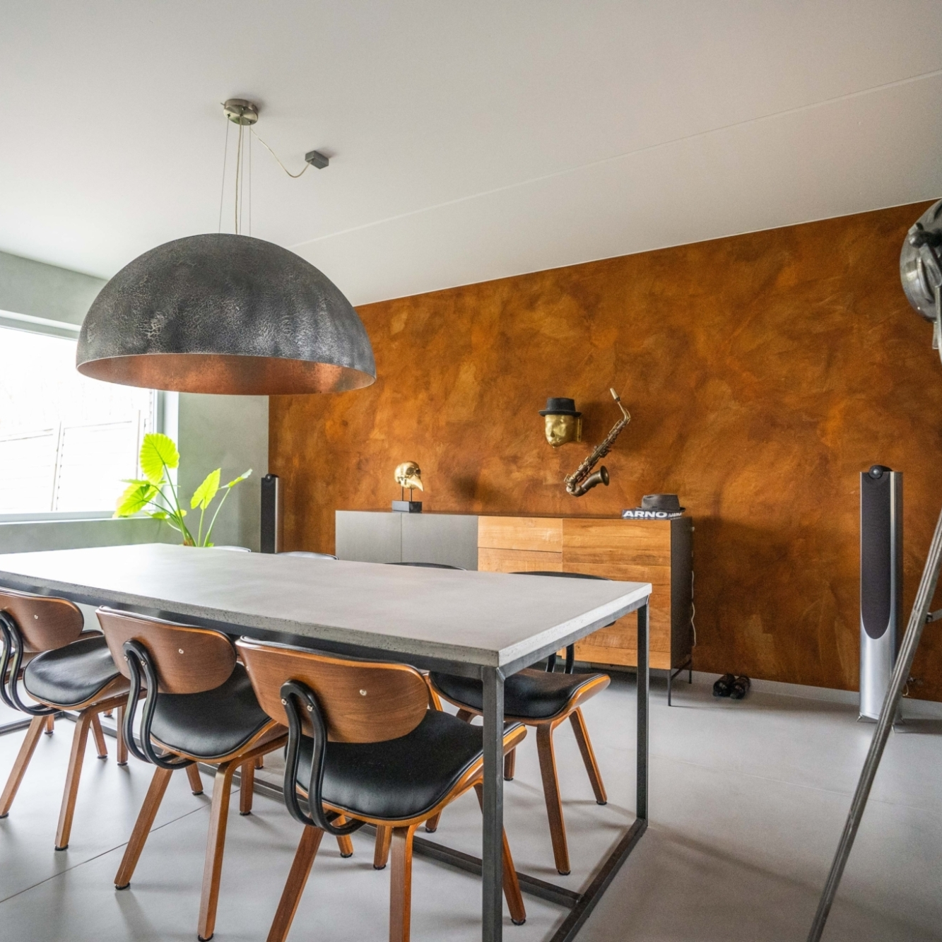 Dankzij de combinatie van natuurlijke pigmenten en oxidatieprocessen, ontstaat een levendig oppervlak met diepte en variatie. Oxidestuc is beschikbaar in verschillende metaalachtige tinten, zoals koper, brons en ijzer, en kan zowel in moderne als industriële interieurs worden toegepast.